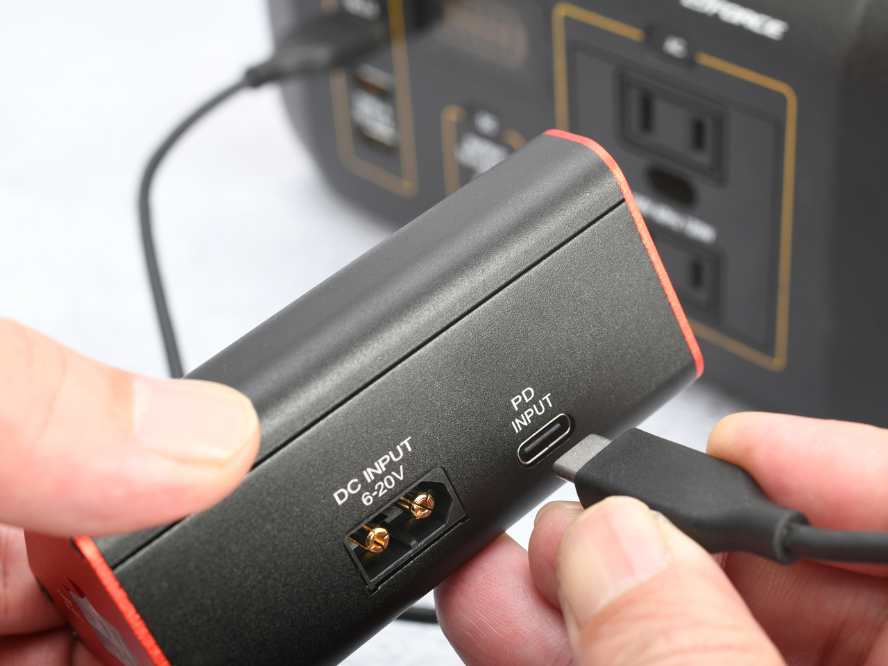 DC6~20Vの電源のほか、PD(USB-Type-C)電源も使用可能。安定化電源はもちろんのこと、走行用バッテリーやモバイル電源など、シーンを選ばず柔軟に運用できます。