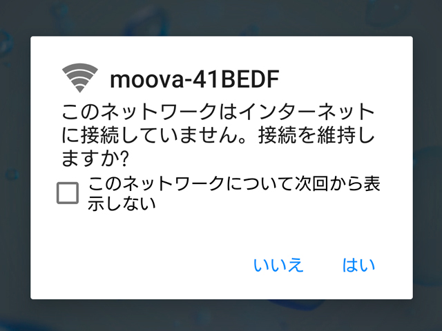 - 「Wi-Fiはインターネット未接続です」というメッセージ(写真1)をタップすると「接続を維持しますか?」というメッセージ(写真2)が表示されるので、「はい」と回答する。