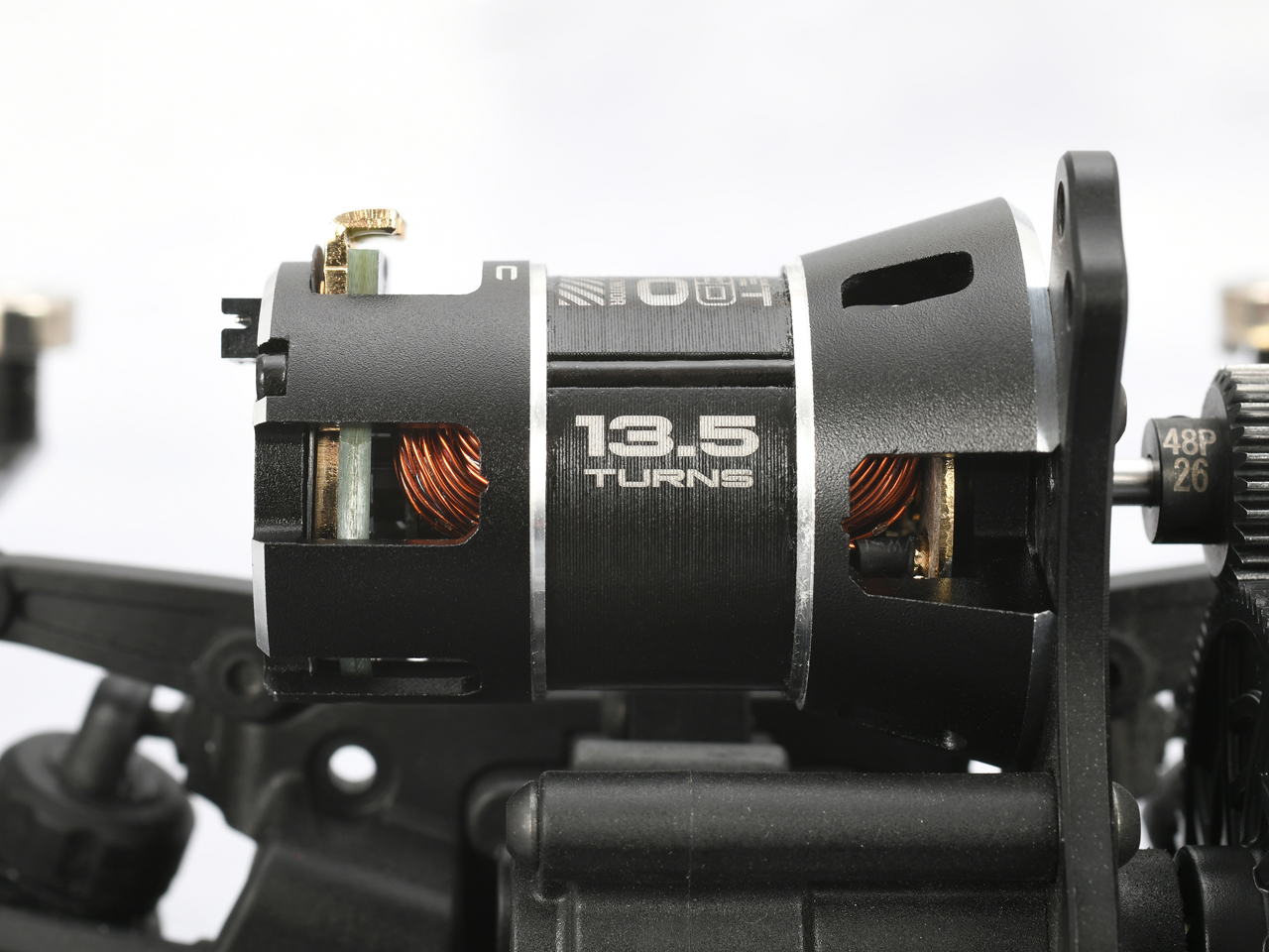 センサー付き&ベアリング軸受仕様。発進時の極低速域からスムーズな加速を実現。進角は固定式とすることで、エンジョイ・パワーでの白熱したレースを存分に楽しめます。