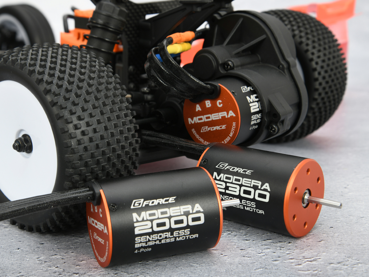540モーターからのステップアップに最適なMODERAセンサーレスブラシレスモーター。走りの好みに合わせて選べるKV2800(13.5T相当)/2300(17.5T相当)/2000(21.5T相当)の3種をご用意。