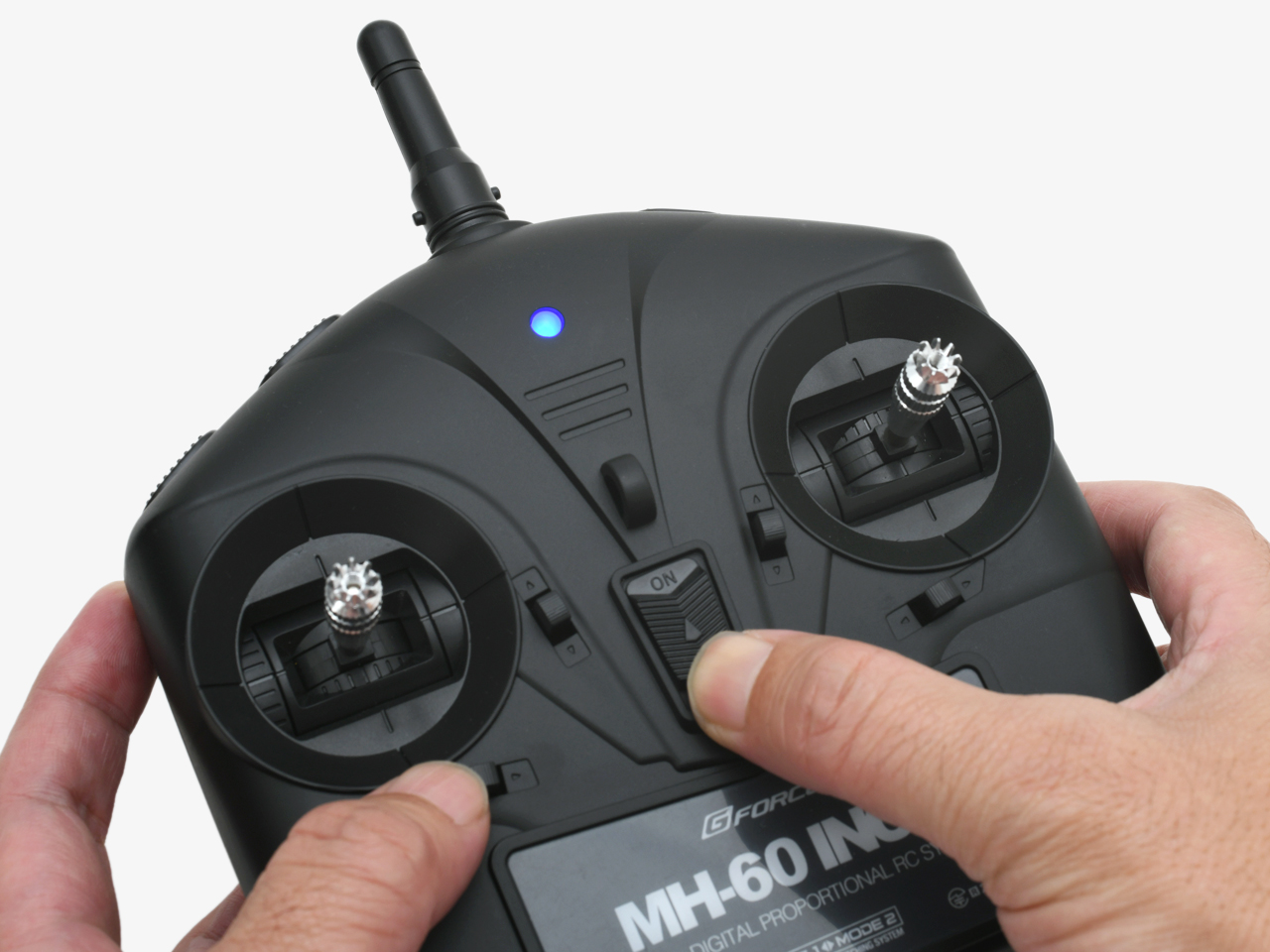 操縦モードはモード1、モード2の切り替えが可能。ヘリユーザーもドローンユーザーも、使い慣れた操縦モードで操作が可能。技術基準適合証明(技適)マーク取得済み。